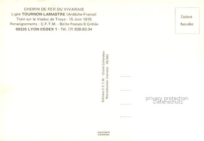 Tournon-sur-Rhone Chemin de fer du Vivarais Ligne Tournon a Lamastre Locomotive Train sur le Viaduc de Troye postalisch nicht gelaufen Erhaltung siehe scans [FriedD77]