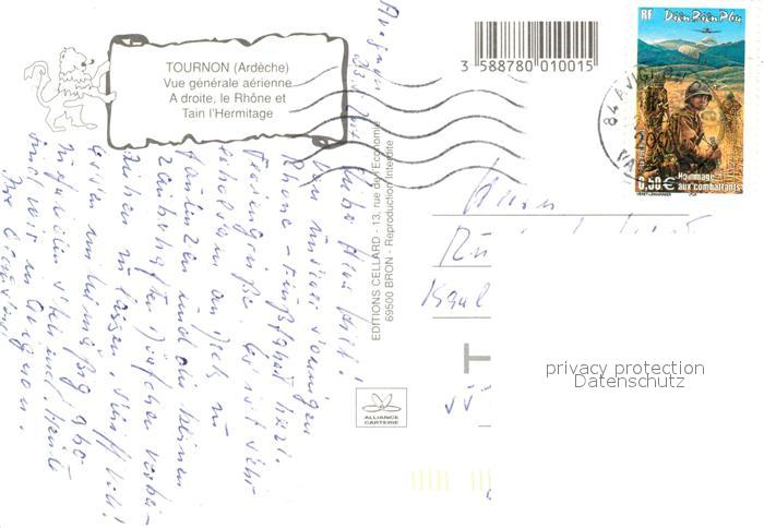13222079 carte postale Tournon-sur-Rhone Fliegeraufnahme postalisch gelaufen Erhaltung siehe scans [KathaD81] KatCode: 11170007307324