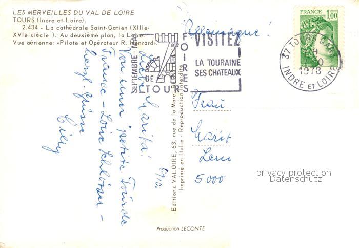 13477901 carte postale Tours Indre-et-Loire Chatédrale Saint Gatien la Loire vue aérienne postalisch gelaufen Erhaltung siehe scans [FriedD77] KatCode: 11170037237261