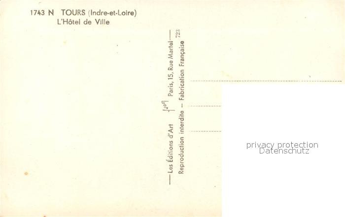 13514811 Tours Indre-et-Loire Hotel de Ville postalisch nicht gelaufen Erhaltung siehe scans [LiesaD40] KatCode: 11170037237261