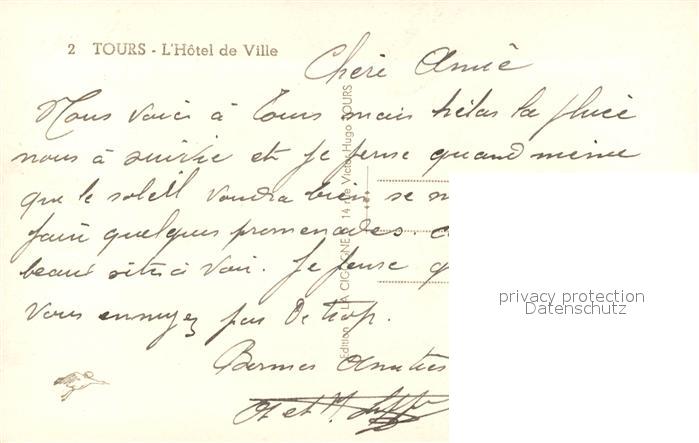 13583022 Tours Indre-et-Loire Hotel de Ville postalisch nicht gelaufen Erhaltung siehe scans [WerneD78] Wern Katcode 11170037237261