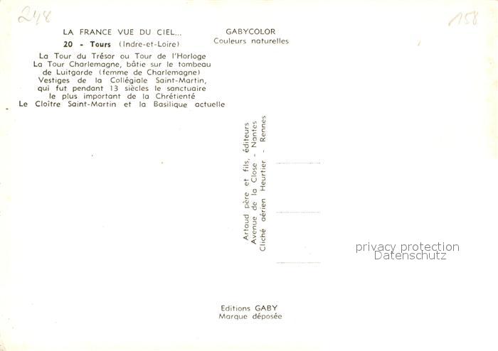 13230550 Tours Indre-et-Loire Les Tours de la ville Cloitre Basilique vue aérienne Collection La France vue du ciel KatCode 11170037237261