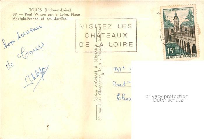 13536463 Tours Indre-et-Loire Pont Wilson sur la Loire Place Anatole France et ses Jardins KatCode 11170037237261