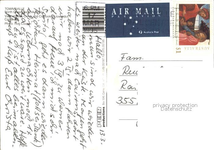 alte Postkarte Townsville Queensland View of Ross Creek and City looking towards Castle Hill Yachts postalisch gelaufen Erhaltung siehe scans