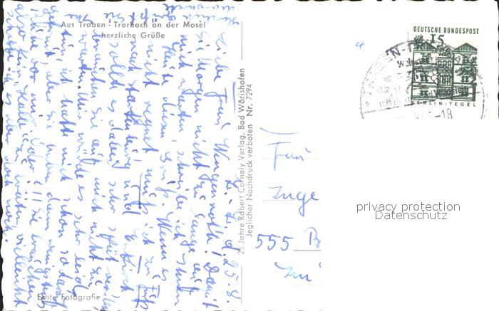 72370102 alte Postkarte Traben-Trarbach Bruece Wein Ruine postalisch gelaufen Erhaltung siehe scans KatCode: 11110007231124