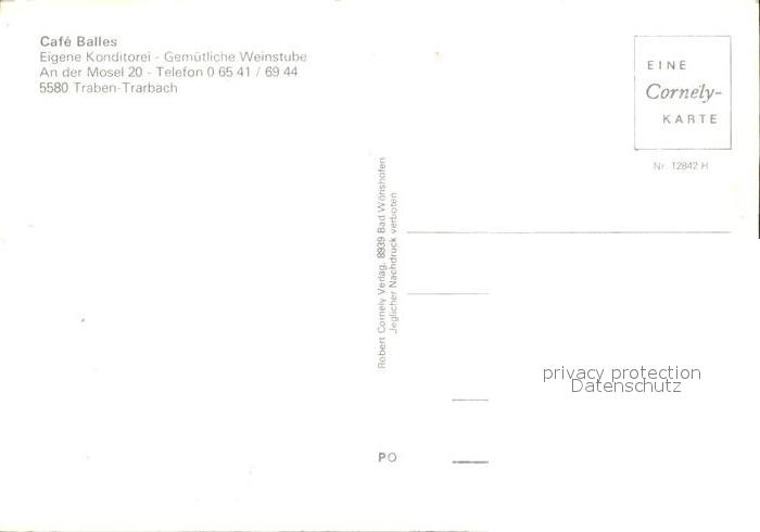 72535231 Traben-Trarbach Cafe Balles Konditorei Weinstube postalisch nicht gelaufen Erhaltung siehe scans [FriedD77 kt118box] KatCode: 11110007231124