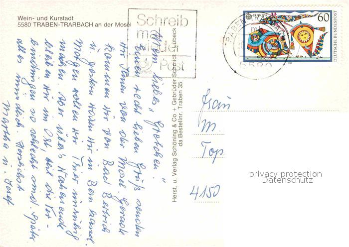 72832072 alte Postkarte Traben-Trarbach Fliegeraufnahme Moselpartie postalisch gelaufen Erhaltung siehe scans [LiesaD40] KatCode: 11110007231124