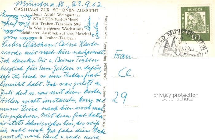 73065401 alte Postkarte Traben-Trarbach Gasthaus zur Schoenen Aussicht Starkenburg Mosel postalisch gelaufen Erhaltung siehe scans [WerneD78] KatCode: 11110007231124
