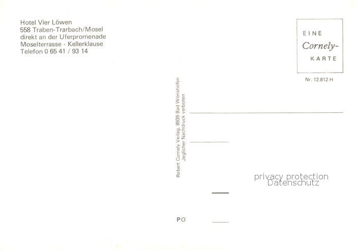 73761346 Traben-Trarbach Hotel Vier Loewen postalisch nicht gelaufen Erhaltung siehe scans [FriedD77] KatCode: 11110007231124