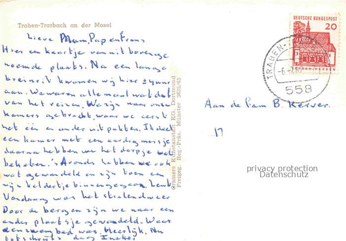 74110295 alte Postkarte Traben-Trarbach Mosel Fliegeraufnahme postalisch gelaufen Erhaltung siehe scans [WerneD78] KatCode: 11110007231124