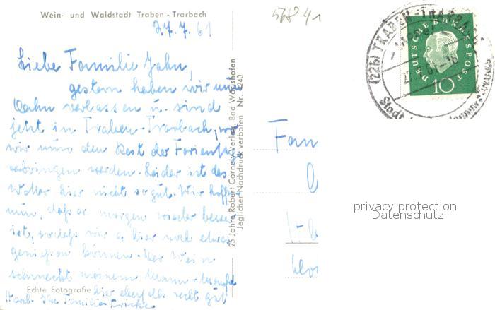 73764478 alte Postkarte Traben-Trarbach Mosel Fliegeraufnahme mit Ruine Grevenburg postalisch gelaufen Erhaltung siehe scans [WerneD78] KatCode: 11110007231124