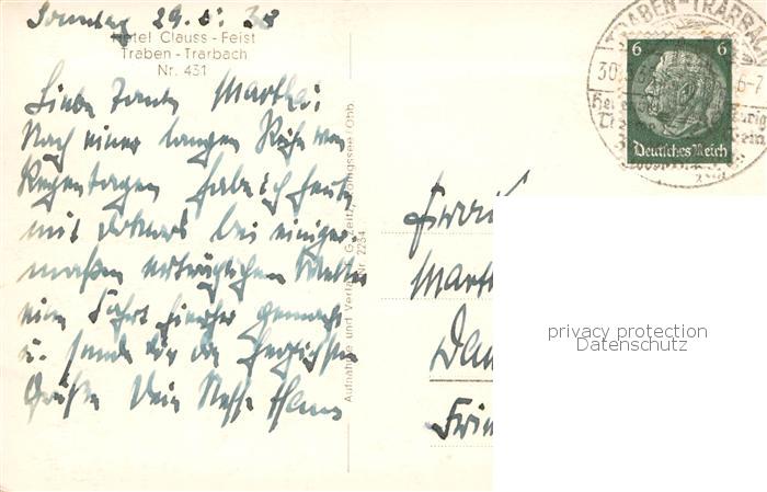 73806079 Traben-Trarbach Mosel Hotel Clauss Feist postalisch gelaufen Erhaltung siehe scans [WerneD78] alte Postkarte Wern Katcode 11110007231124
