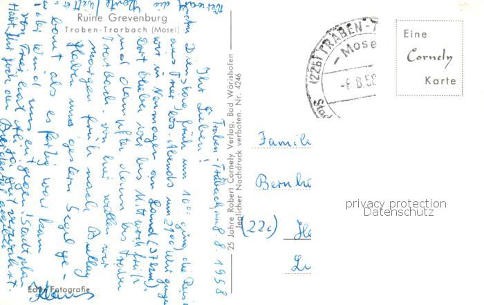 73804402 Traben-Trarbach Mosel Ruine Grevenburg Fliegeraufnahme postalisch gelaufen Erhaltung siehe scans [FriedD77] alte Postkarte Frie Katcode 11110007231124