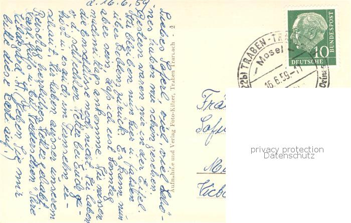 73779810 Traben-Trarbach Mosel Uferweg an der Mosel postalisch gelaufen Erhaltung siehe scans [FriedD77] alte Postkarte Frie Katcode 11110007231124