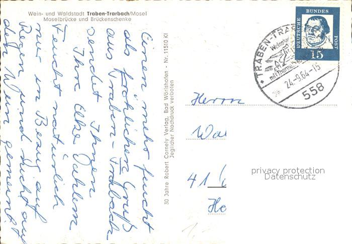 72178827 alte Postkarte Traben-Trarbach Moselbruecke Brueckenschenke postalisch gelaufen Erhaltung siehe scans KatCode: 11110007231124