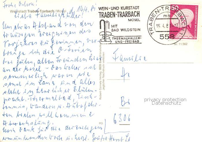 73127552 alte Postkarte Traben-Trarbach Panorama Moseltal Weinberge postalisch gelaufen Erhaltung siehe scans [FriedD77] KatCode: 11110007231124