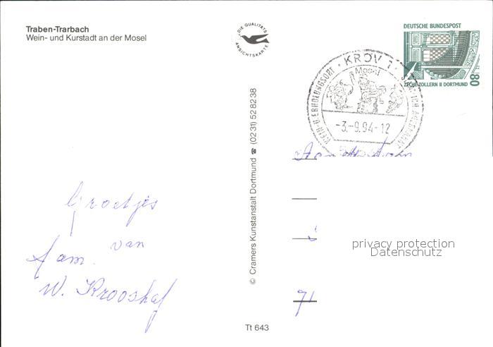 72416632 alte Postkarte Traben-Trarbach Panorama Wein und Kurstadt an der Mosel postalisch gelaufen Erhaltung siehe scans KatCode: 11110007231124