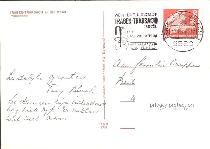 72305248 alte Postkarte Traben-Trarbach Promenade postalisch gelaufen Erhaltung siehe scans KatCode: 11110007231124