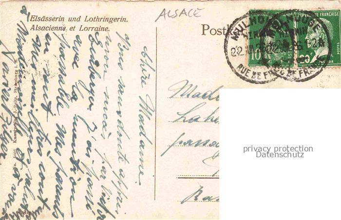 74020631 alte Postkarte Trachten Alsace Elsaesserin Lothringerin postalisch gelaufen Erhaltung siehe scans [IrynaD87] KatCode: 22440000006100
