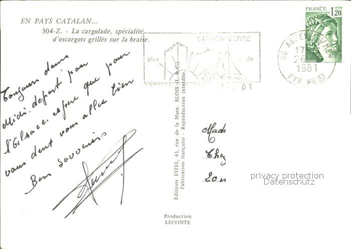 72352044 Trachten Frankreich Pays Catalan Cargolade Grillen KatCode 22440000006100
