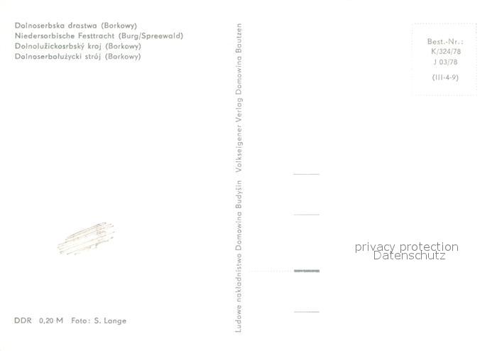 72998425 Trachten Niedersorbische Festtracht Burg Spreewald KatCode 22440000006100