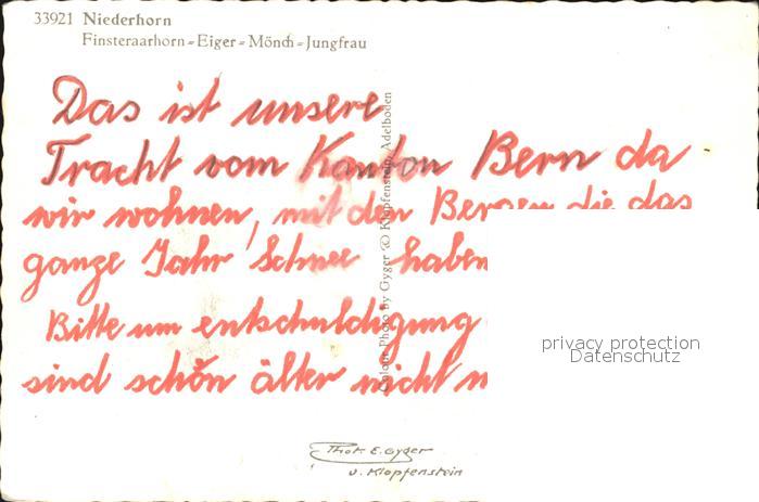 72473249 Trachten Schweiz Niederhorn Finsteraarhorn Eiger-Mönch-Jungfrau KatCode 22440000006100