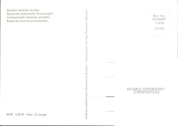 72596202 Trachten Sorbische katholiche Brautjungfer KatCode 22440000006100