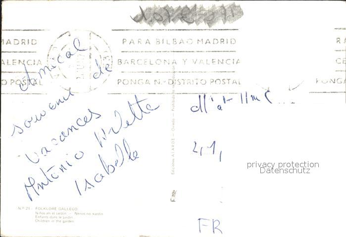 alte Postkarte Trachten Spanien Kinder Folklore Gallego postalisch gelaufen Erhaltung siehe scans