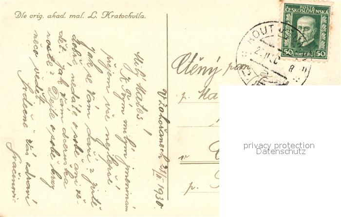 43282919 Trachten Tschechien Glückwunsch Blumen Künstlerkarte L. Kratochvila KatCode 22440000006100