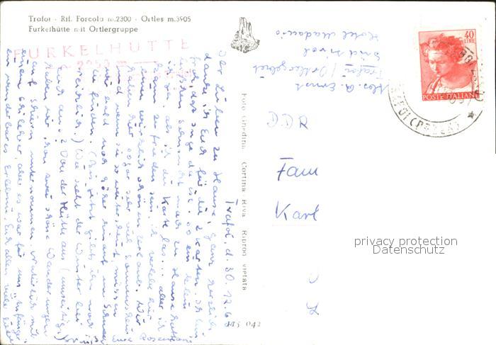 old postcard Trafoi Suedtirol Furkelhuette mit Ortlergruppe postalisch gelaufen Erhaltung siehe scans