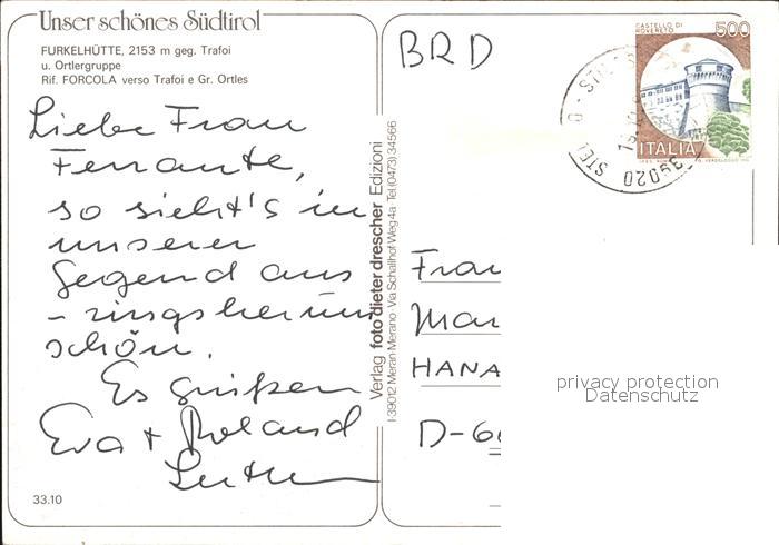 old postcard Trafoi Suedtirol Furkelhuette Ortlergruppe im Herbst postalisch gelaufen Erhaltung siehe scans