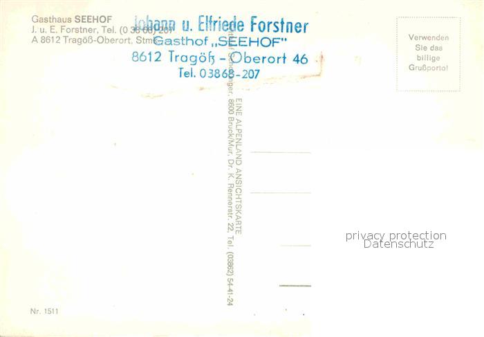 72928950 Tragoess Gasthaus Seehof Gruener See Alpen postalisch nicht gelaufen Erhaltung siehe scans [FriedD77] KatCode: 11390223060220