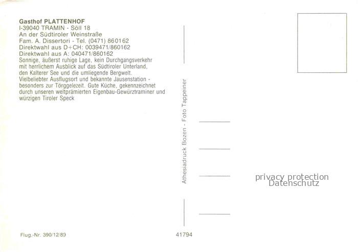 74043741 Tramin Suedtirol IT Gasthof Plattenhof postalisch nicht gelaufen Fliegeraufnahme Erhaltung siehe scans [FriedD77] KatCode: 11240