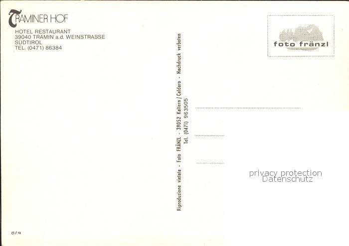 Tramin Weinstrasse Hotel Restaurant Traminer Hof Fliegeraufnahme postalisch nicht gelaufen Erhaltung siehe scans