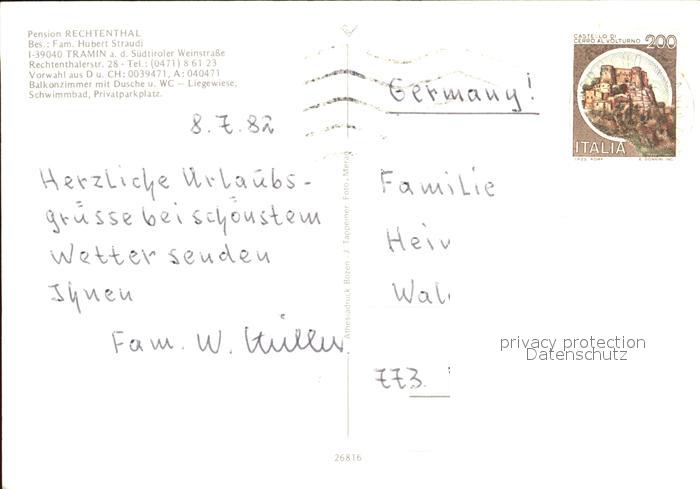 alte Postkarte Tramin Weinstrasse Pension Rechtenthal postalisch gelaufen Erhaltung siehe scans [NatalD47]