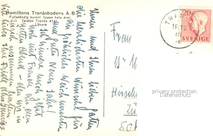 old postcard Tranas Hamiltons Tranasbadens Hotel Restaurant Fliegeraufnahme postalisch gelaufen Erhaltung siehe scans [FriedD77]