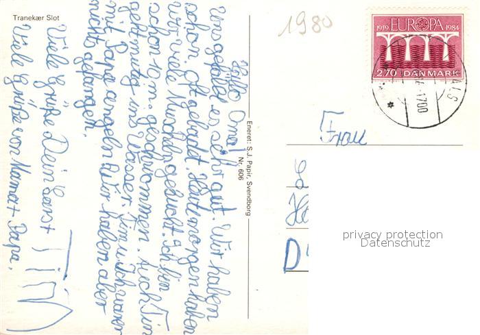 old postcard Tranekaer Slot postalisch gelaufen Erhaltung siehe scans [NatalD47]