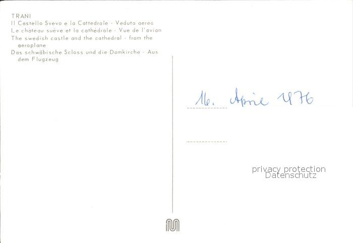 Trani Castello Svevo Cattedrale veduta aerea Schloss Kathedrale postalisch nicht gelaufen Erhaltung siehe scans
