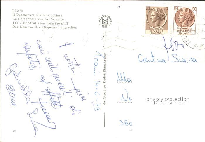 old postcard Trani Il Duomo visto dalla scogliera postalisch gelaufen Erhaltung siehe scans