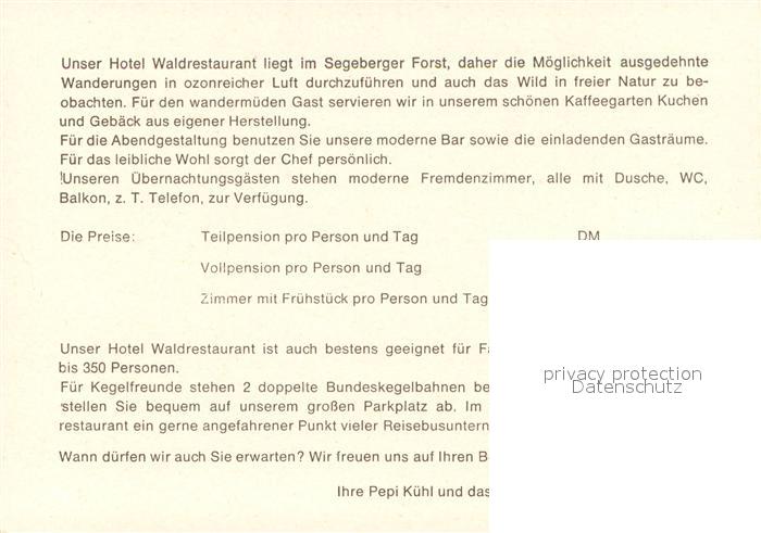73647005 Trappenkamp Hotel Waldrestaurant Trappenkamp Kegelbahnen Zimmer Terrasse postalisch nicht gelaufen Werbekarte (keine Postkarte) Erhaltung siehe scans [WerneD78] KatCode: 11110001060089