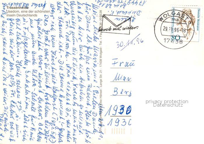 73766068 alte Postkarte Trassenheide Usedom Duenenwaldklinik postalisch gelaufen Fliegeraufnahme Erhaltung siehe scans [FriedD77] KatCode: 11110013059095