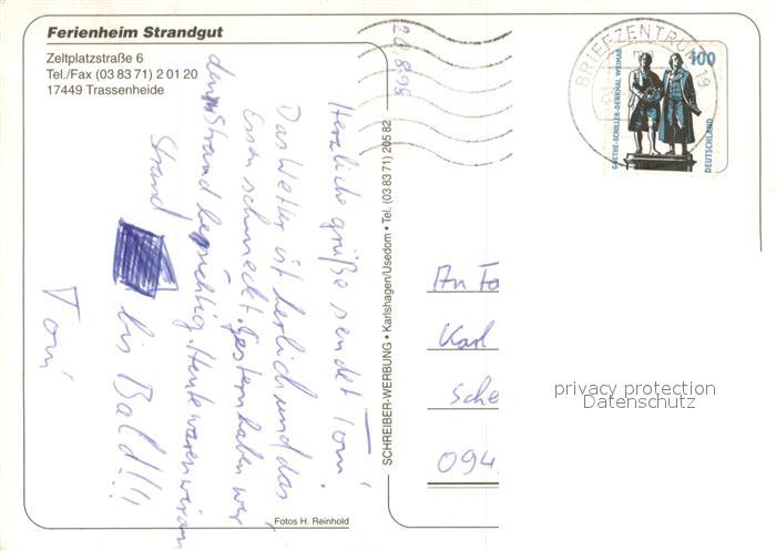 73707562 alte Postkarte Trassenheide Usedom Ferienheim Strandgut Fruehstueckbuffet Zelten postalisch gelaufen Erhaltung siehe scans [WerneD78] KatCode: 11110013059095