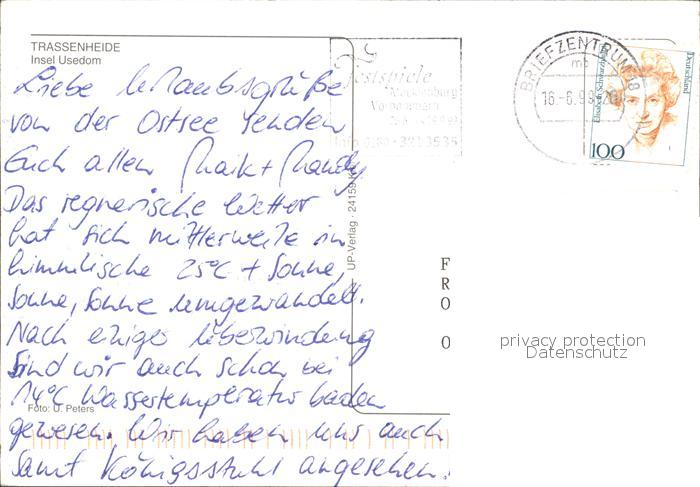 72337039 alte Postkarte Trassenheide Usedom Fliegeraufnahme postalisch gelaufen Erhaltung siehe scans KatCode: 11110013059095