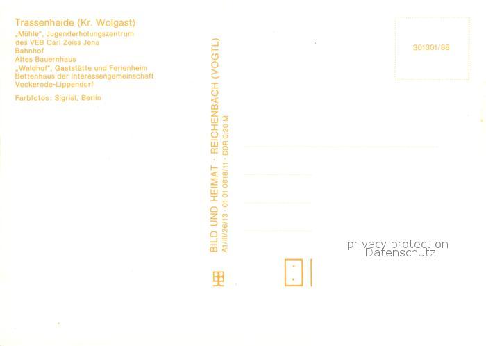 72972828 Trassenheide Usedom Muehle Jugenderholungszentrum Bahnhof Bauernhaus Waldhof Gaststaette Ferienheim Bettenhaus postalisch nicht gelaufen Erhaltung siehe scans [FriedD77] KatCode: 11110013059095