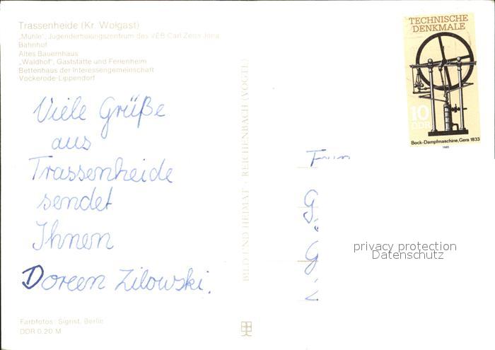 72348248 alte Postkarte Trassenheide Usedom Muehle Jugenderholungszentrum Carl Zeiss Jena Bahnhof postalisch gelaufen Erhaltung siehe scans KatCode: 11110013059095