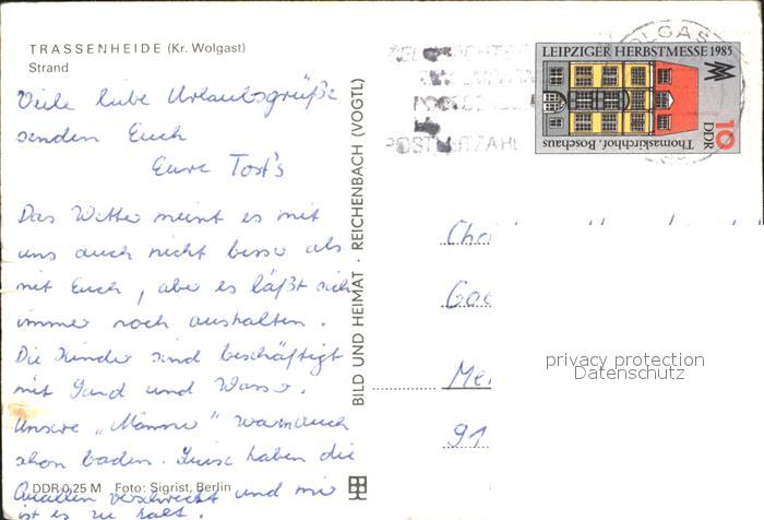 72328811 alte Postkarte Trassenheide Usedom Strand postalisch gelaufen Erhaltung siehe scans KatCode: 11110013059095