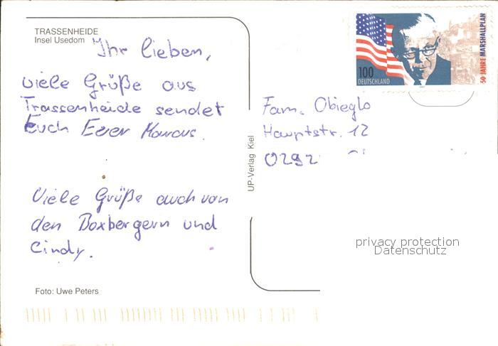 72337040 alte Postkarte Trassenheide Usedom Strand Fahrradfahren Beachvolleyball Sonnenuntergang postalisch gelaufen Erhaltung siehe scans KatCode: 11110013059095