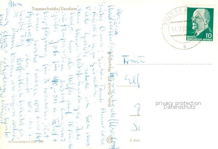 73137941 alte Postkarte Trassenheide Usedom Strand postalisch gelaufen Erhaltung siehe scans [NatalD47] KatCode: 11110013059095