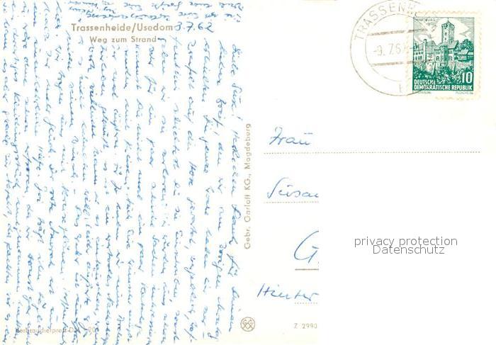73030411 alte Postkarte Trassenheide Usedom Strandweg postalisch gelaufen Erhaltung siehe scans [WerneD78] KatCode: 11110013059095