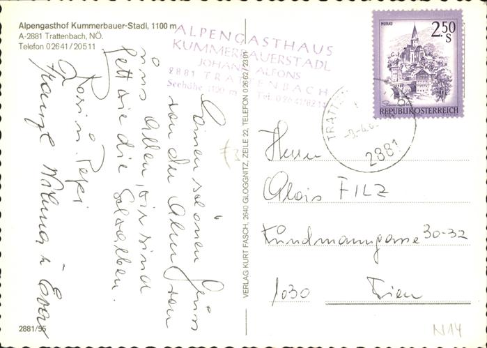 71419652 alte Postkarte Trattenbach Alpengasthof Kummerbauer-Stadl postalisch gelaufen Erhaltung siehe scans KatCode: 11390122031841